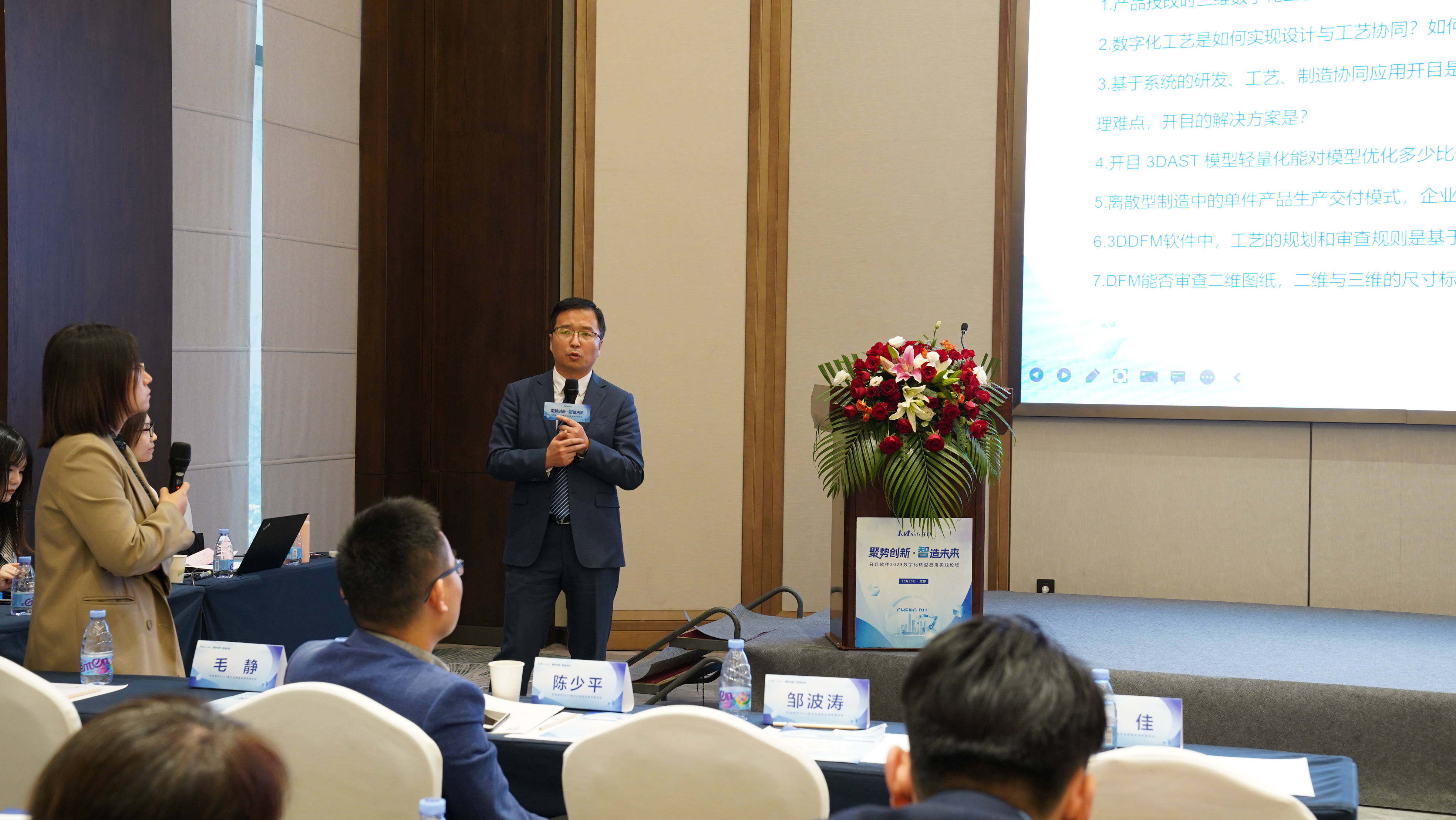 中國(guó)航空工業(yè)集團(tuán)某公司副總工程師鄒波濤,進(jìn)行了《數(shù)字化工藝與仿真驗(yàn)證平臺(tái)構(gòu)建與應(yīng)用》專題演講,他提到“數(shù)字化工藝與仿真驗(yàn)證系統(tǒng)”推進(jìn)了企業(yè)工藝設(shè)計(jì)標(biāo)準(zhǔn)化、數(shù)字化和結(jié)構(gòu)化,促進(jìn)工藝知識(shí)復(fù)用與創(chuàng)新,為下游生產(chǎn)提供精細(xì)化工藝數(shù)據(jù)支持,實(shí)現(xiàn)三維工藝下車間,實(shí)現(xiàn)了設(shè)計(jì)、工藝、生產(chǎn)協(xié)同并行工作。為制造企業(yè)構(gòu)建工藝數(shù)字化、智能化、結(jié)構(gòu)化管理模式等提供了實(shí)踐經(jīng)驗(yàn)。