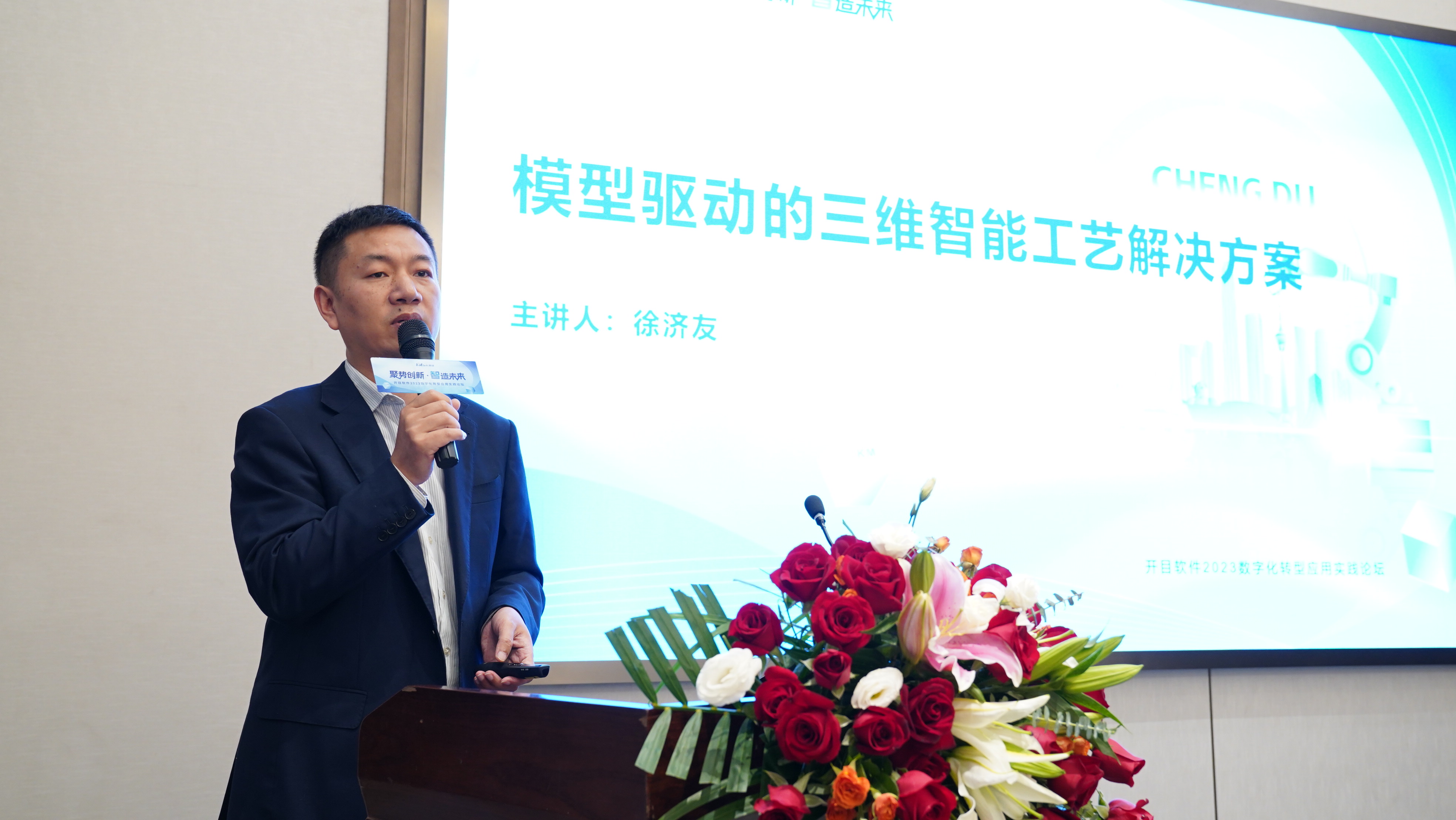 會(huì)上,開目軟件副總經(jīng)理張永華發(fā)表《數(shù)字賦能,創(chuàng)新智造》大會(huì)主題致辭,他強(qiáng)調(diào),國(guó)產(chǎn)工業(yè)軟件正迎來發(fā)展壯大的春天,工業(yè)軟件企業(yè)既要抓住機(jī)遇期,也要苦練內(nèi)功,堅(jiān)持自主創(chuàng)新,才能走好突圍之路!同時(shí),張總也介紹了開目智能制造整體解決方案與工業(yè)軟件自主核心系列產(chǎn)品,以及以客戶為中心的經(jīng)營(yíng)理念。張總提到,開目軟件擁有近30年賦能高端制造業(yè)數(shù)字化轉(zhuǎn)型的實(shí)踐經(jīng)驗(yàn)和技術(shù)沉淀,可幫助制造業(yè)數(shù)字化變革全速駛?cè)氚l(fā)展快車道。